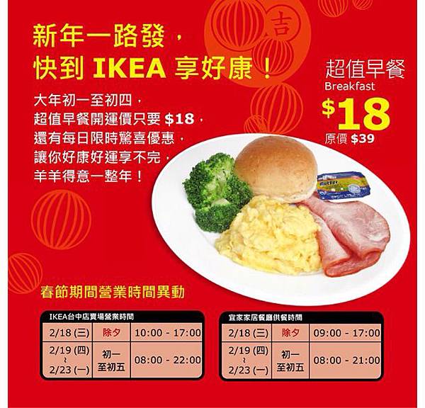 過年期間還有更大的優惠給早起的民眾,39元的早餐特價18元!!早起的鳥兒真的有好早餐等著你喔!