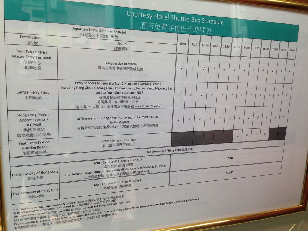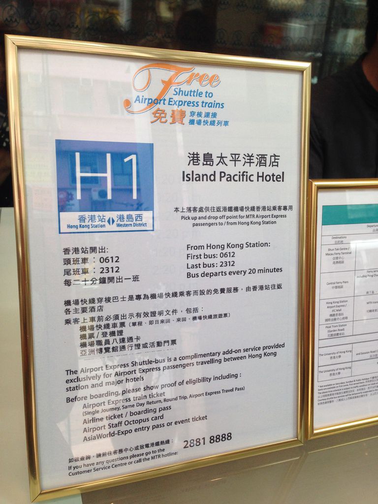 從機場快線的港島中環站匣口刷卡出來,馬上就可以看到飯店接駁巴士站,不用上樓,輕鬆前往要入住的酒店,而且此一服務為「免費」,大家可以多加使用!