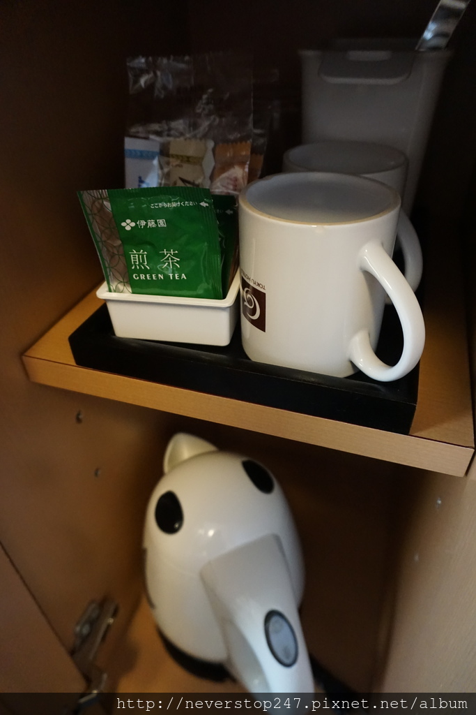 這家飯店沒有附礦泉水,要自己裝水龍頭的水煮開來泡茶,別忘了,日本的水可生飲(雖然地震後不太建議)
